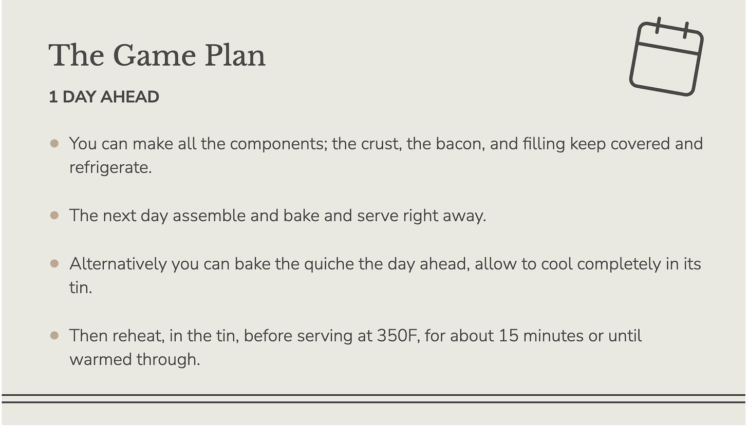 Or you can bake it a day before, refrigerate it, then reheat it in a 350°F oven until warmed through.
